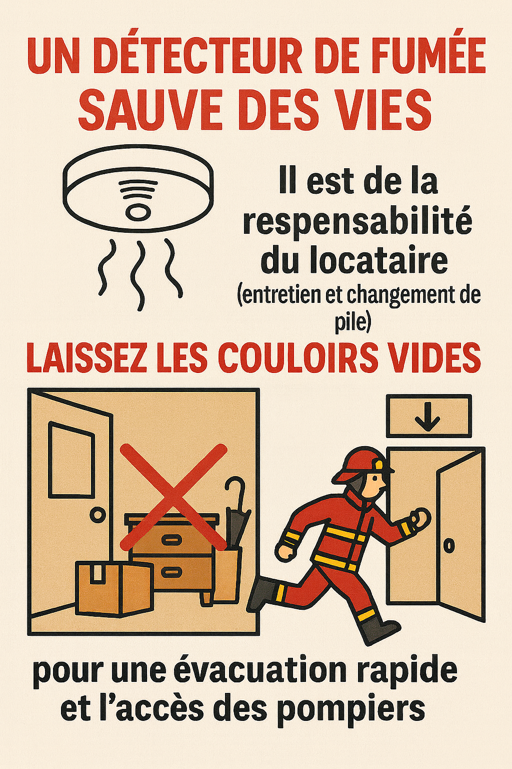 👨🚒 Merci de laisser en permanence les espaces communs et voies de passage dégagés pour faciliter votre évacuation et l'intervention des pompiers et secours.
